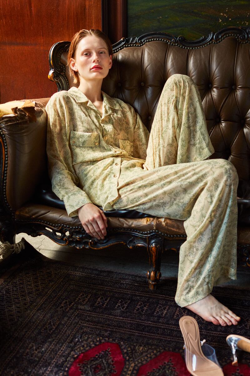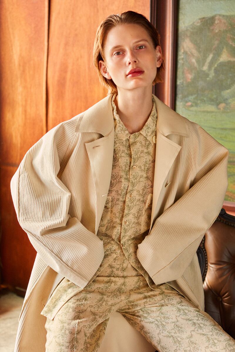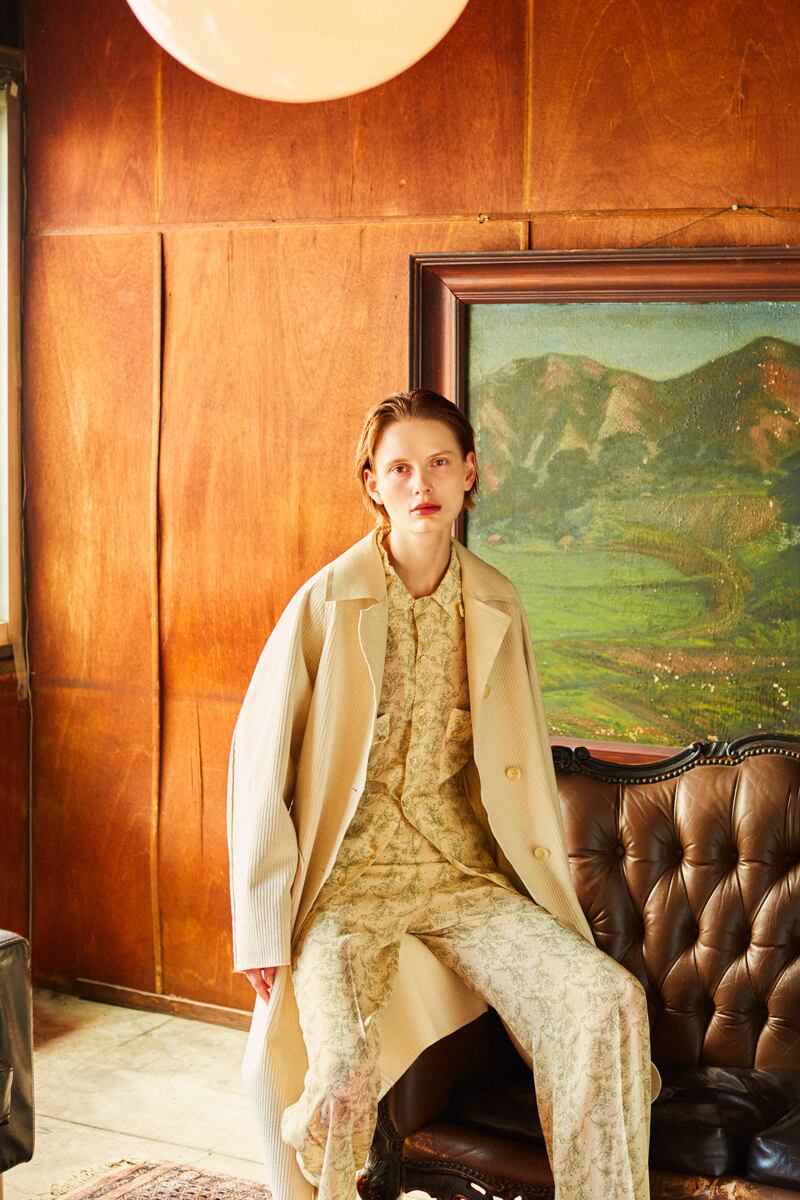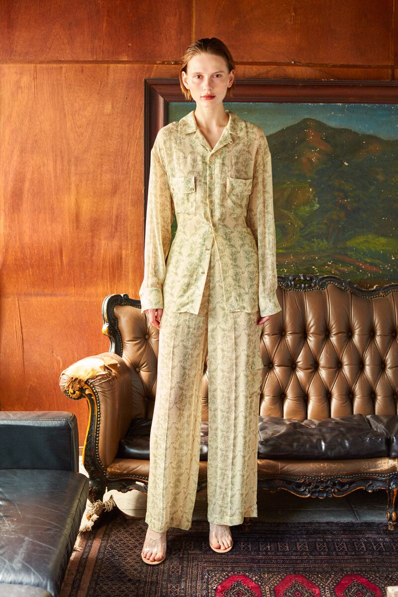 上質なSILK100%のジョーゼットを使用した「botanical silk shirt blouse」は、繊細なボタニカルプリントが施された程よいシアー感が特徴のブラウスです。